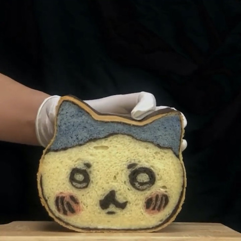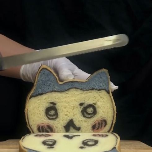 パンを切ると『ちいかわ』のハチワレが登場!? ユニークなパンの動画に「かわいい」「食べられないw」の声