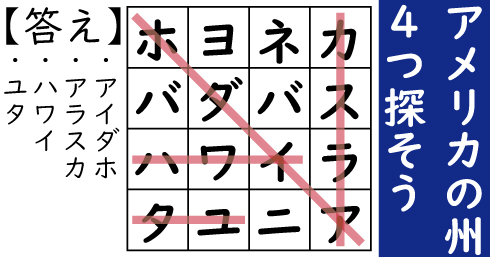 盤面に隠された「アメリカの州」を4人探そう【言葉探しパズル】