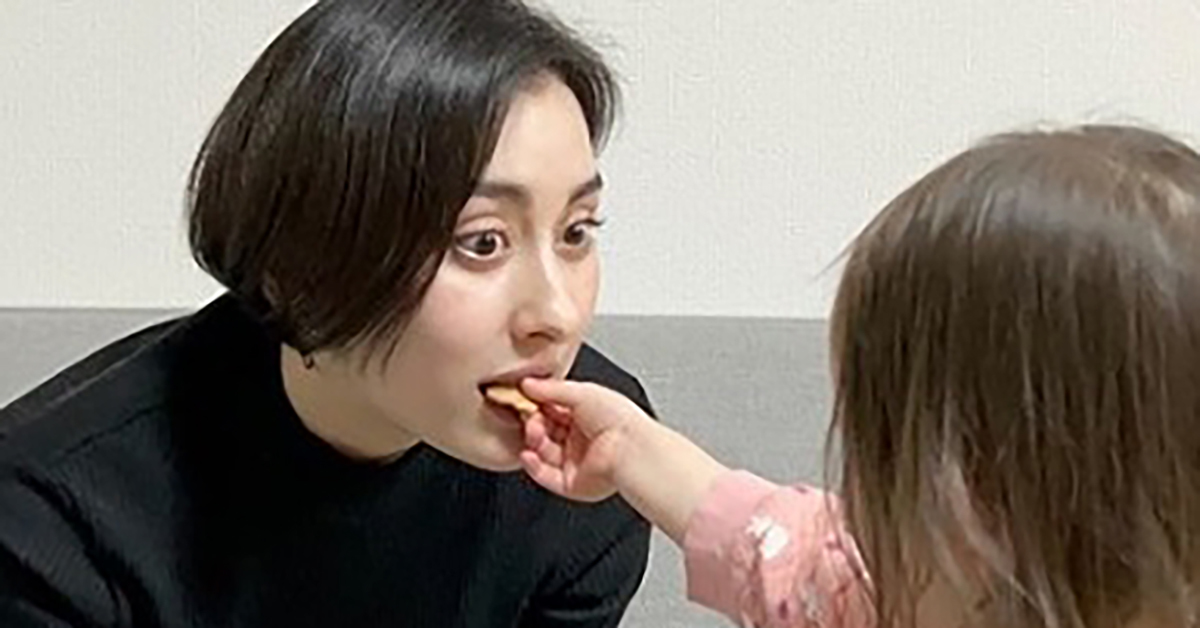 2歳の長女からクッキーを食べさせてもらう早見あかり