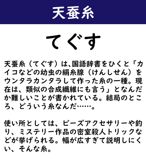 - 【前回の問題】「天蚕糸」の読み方は?(3文字で読むと?)