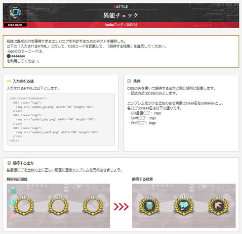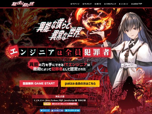 こんなストーリーのブラウザゲーム「異能な僕らと異常な世界」が、paizaからリリースされました。ITエンジニアに特化した転職・就活サービスを展開する同社ならではの、「D〜Sランクまで5段階に分かれた問題で、プログラミングの腕試しができる(そして、そのスキルで世界を救うのだ!)」という内容です。