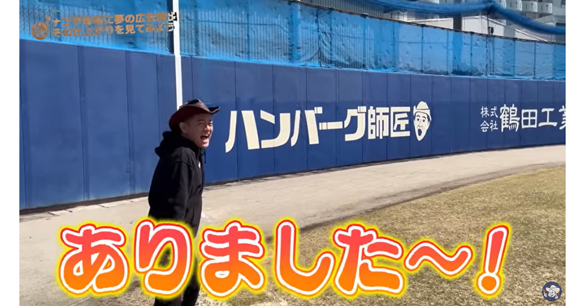 お笑いコンビ「スピードワゴン」の井戸田潤さんが3月27日、“ハンバーグ師匠”名義のYouTubeチャンネル「ハンバーグ師匠チャンネル」を更新。ナゴヤ球場にハンバーグ師匠の広告を掲出したと報告しました。