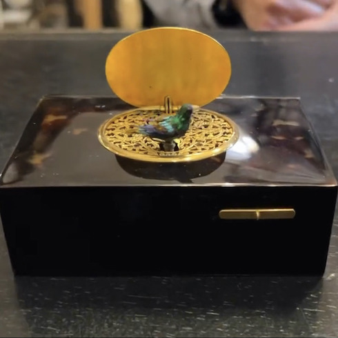 ちなみにぜんまいが切れると、すさまじいスピードでフタが閉じ、鳥は一瞬にして箱の中へ帰っていく仕様。それまでのかわいらしさとは裏腹な唐突すぎる退場も含めて愛らしさにあふれています。