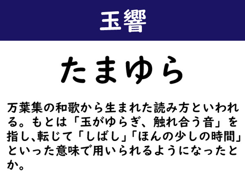 万葉集の和歌から生まれた読み方といわれる。もとは「玉がゆらぎ、触れ合う音」を指し、転じて「しばし」「ほんの少しの時間」といった意味で用いられるようになったとか。