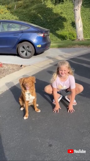女の子とワンコが一緒に技にチャレンジ シンクロ率高い「おすわり」や「ふせ」がかわいい【米】