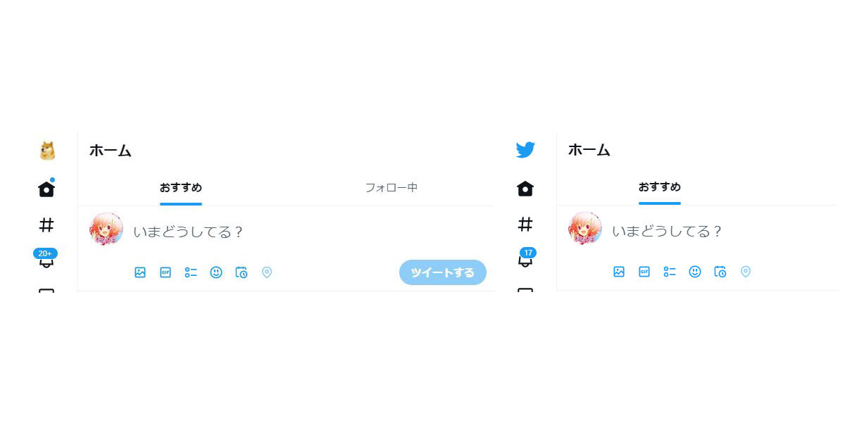 Twitterのアイコン、柴犬から青い鳥に戻る 「コナミコマンドで回転」はそのまま