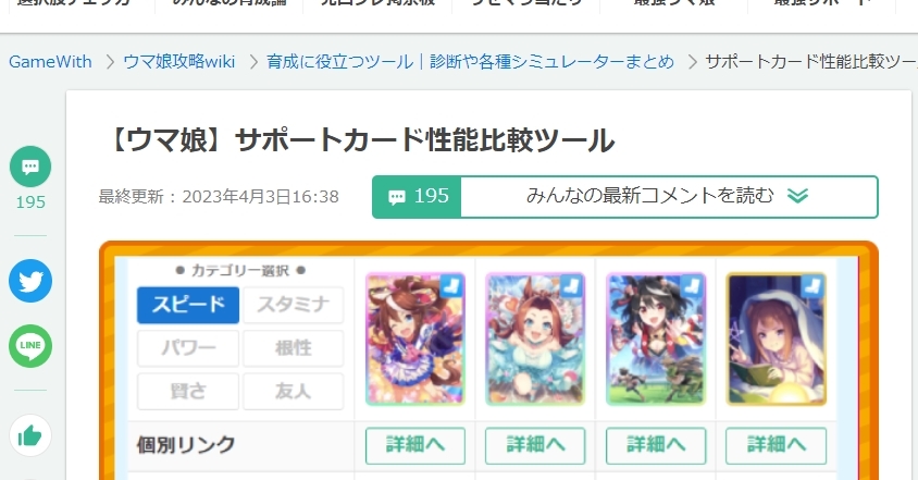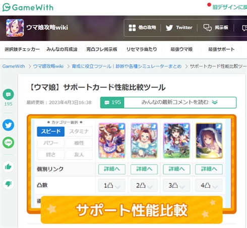 問題となったGameWithの「サポートカード性能比較ツール」