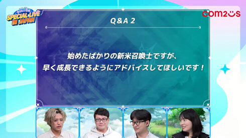 Q:始めたばかりの新米召喚士ですが、早く成長できるようにアドバイスしてほしいです!