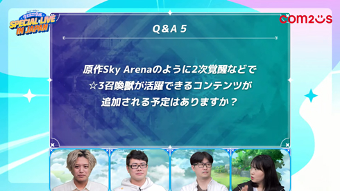 Q:原作『Sky Arena』のように、2次覚醒などで☆3召喚獣が活躍できるコンテンツが追加される予定はありますか?