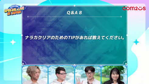 特に「開発チームに聞くクロニクルQ&A」のコーナーでは、プレイヤーの声に応えて開発現場の裏側まで話してくれる2人の姿に、MCの井上正大さん、しょーとくさんも「そんなことまで話していいの!?」と盛り上がりを見せていました。その回答内容を一部抜粋して、掲載します。