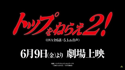 SFロボットアニメの金字塔「トップをねらえ!」シリーズの35周年を記念した、「トップをねらえ!」「トップをねらえ2!」の劇場上映が決定。その日程が発表されました。