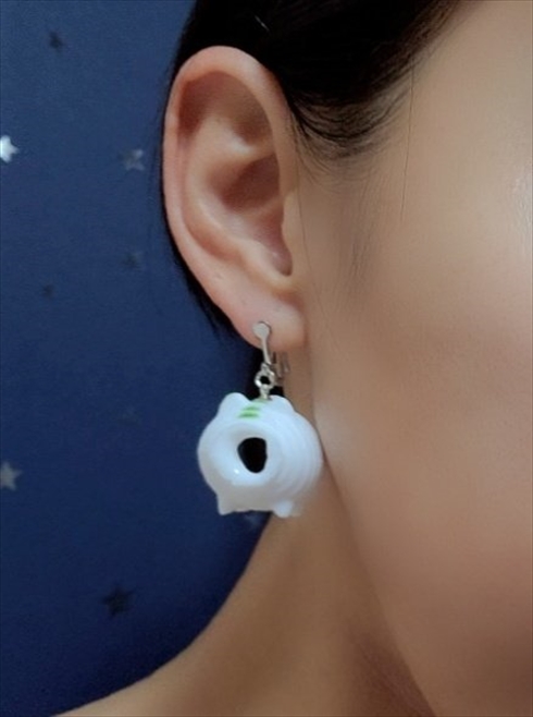 実際に装着している参考写真も披露しており、何気なく置いているだけでもミニチュア感があってキュートですが、耳たぶの下で白いぶたさんがゆらゆらと揺れている様子を想像するとかわいさ倍増。これからの季節にもピッタリですね。