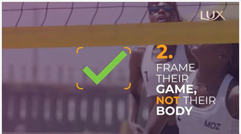 QRコードをスキャンすると、アスリートの体の一部ではなく強さや能力にフォーカスしてほしいと呼びかける動画が表示されます。動画ではメディアに向けて、女性アスリート撮影のガイドラインとして「体の性的な部分にフォーカスしない」「身体ではなく試合をフレームに収める」「無分別なアングルは避ける」などを呼びかけています。
