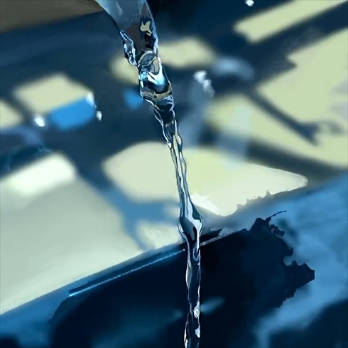 “流れる水”の作画を記録した動画が「本物にしか見えない」とTwitterで注目を集めています。これが絵とは信じられない……。
