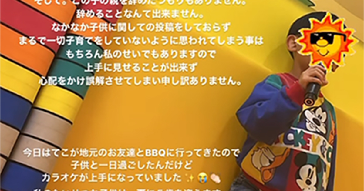 さらに、「この子の親を辞めたつもりもありません。辞めることなんて出来ません」と親としての立場を表明。子育てについてSNSでの投稿が減ったことに対しては、「なかなか子供に関しての投稿をしておらず まるで一切子育てをしていないように思われてしまう事は もちろん私のせいでもありますので 上手に見せることが出来ず 心配をかけ誤解させてしまい申し訳ありません」と謝罪しました。