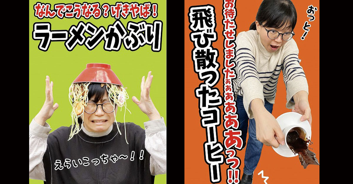 頭からラーメンをかぶった姿や、コーヒーをこぼしそうな姿で写真を撮影できるコーナーも。Twitter映えする写真を撮影できそうです。