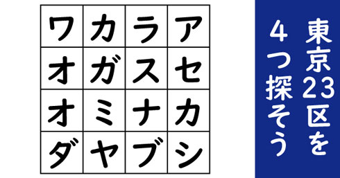 この中に東京23区が4つ隠れています【言葉探しパズル】