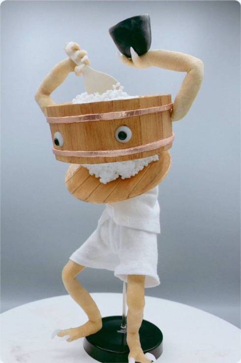 この3D作品を製作して「きもかわいい」と紹介したのは、イギリス在住の3DCGモデラー兼人形作家Acotama(TwitterInstagram)さん。身体は人間ながら、顔の部分はご飯桶で出来ている妖怪の原画を立体化しました。原画では妖怪の手足はにょろにょろと生えていますが、3D作品では手足がしっかり生えています。