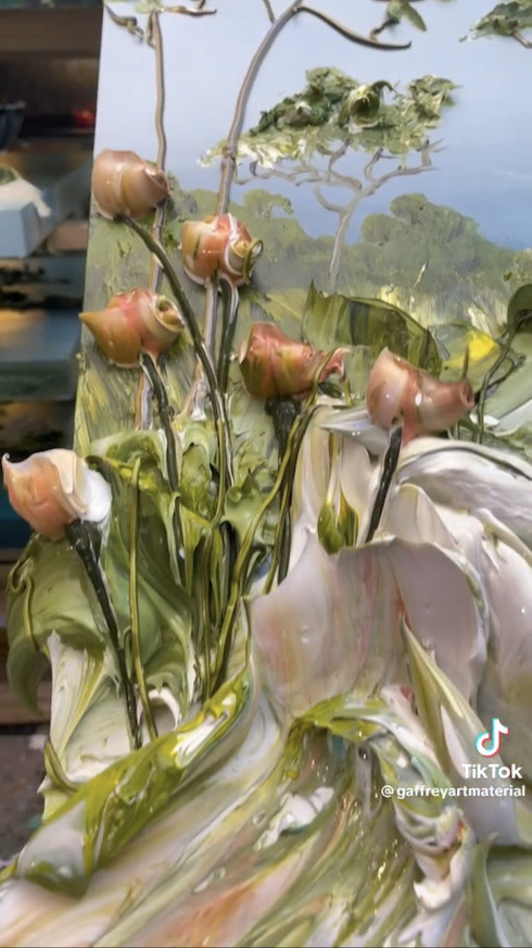 投稿者は、米フロリダ州で画材の製造を行っているGaffrey Art Material(@gaffreyartmaterial)。自社で生産している、分厚く塗ることのできる絵の具を使っています。