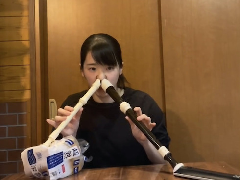 話題になっているのは、Twitterユーザーのはるか2号(@haruka_2go)さんが投稿した動画。鼻息だけでリコーダーを吹いて、YOASOBIの楽曲「夜に駆ける」を演奏しています。