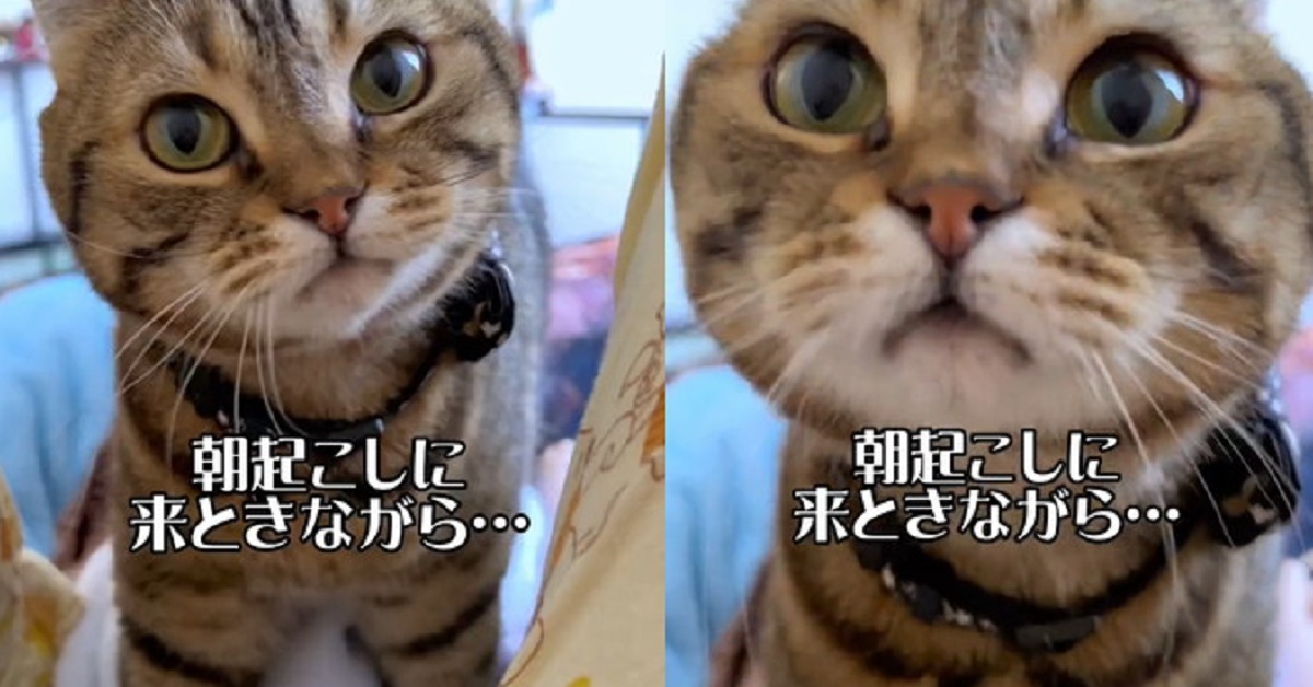 スコティッシュフォールドの男の子「ティノ」(8歳)くんは、朝になるとママさんを起こしに来てくれるニャラーム猫ちゃん。この日も、ママさんのところへゴロゴロと喉を鳴らしながらやってきました。