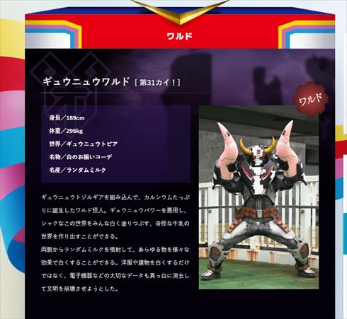 農水省のTwitterに登場したのはテレビ朝日の特撮番組「機界戦隊ゼンカイジャー」に登場するギュウニュウワルド。敵組織が生み出したワルド怪人で、ギュウニュウパワーを悪用してあらゆるものを白く塗る能力を持っています。
