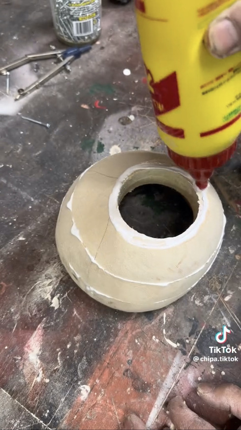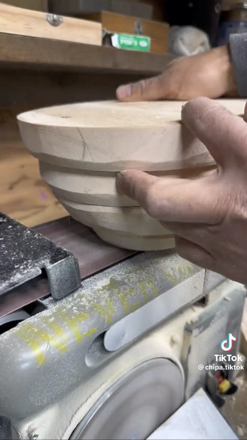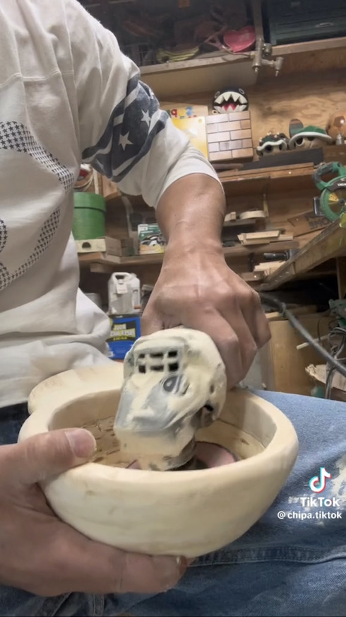 投稿者は大工のCHiPa(@chipa.tiktok)さん。丸くカットした木材を組み合わせて、マリオのトレードマークである赤い帽子を作っていきます。単に見た目を似せるだけでなく、実際にかぶれるように内側をくり抜くというこだわりも。