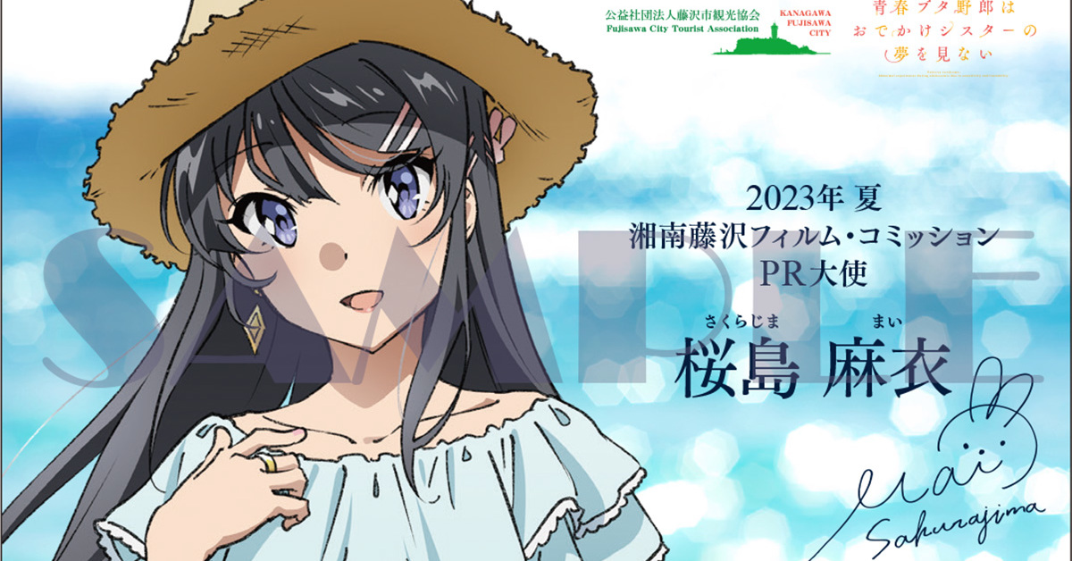 同作の舞台は、神奈川県の藤沢エリア。江ノ島や七里ヶ浜、鎌倉といった場所が頻繁に登場することもあり、「青春ブタ野郎はおでかけシスターの夢を見ない」の劇場公開に併せて藤沢市とのコラボレーションが決定。メインヒロインの桜島麻衣が2023年湘南藤沢フィルム・コミッションPR大使に任命された他、オリジナルのキャラクターのぼりの掲出やうちわの配布が6月9日以降順次実施されます。