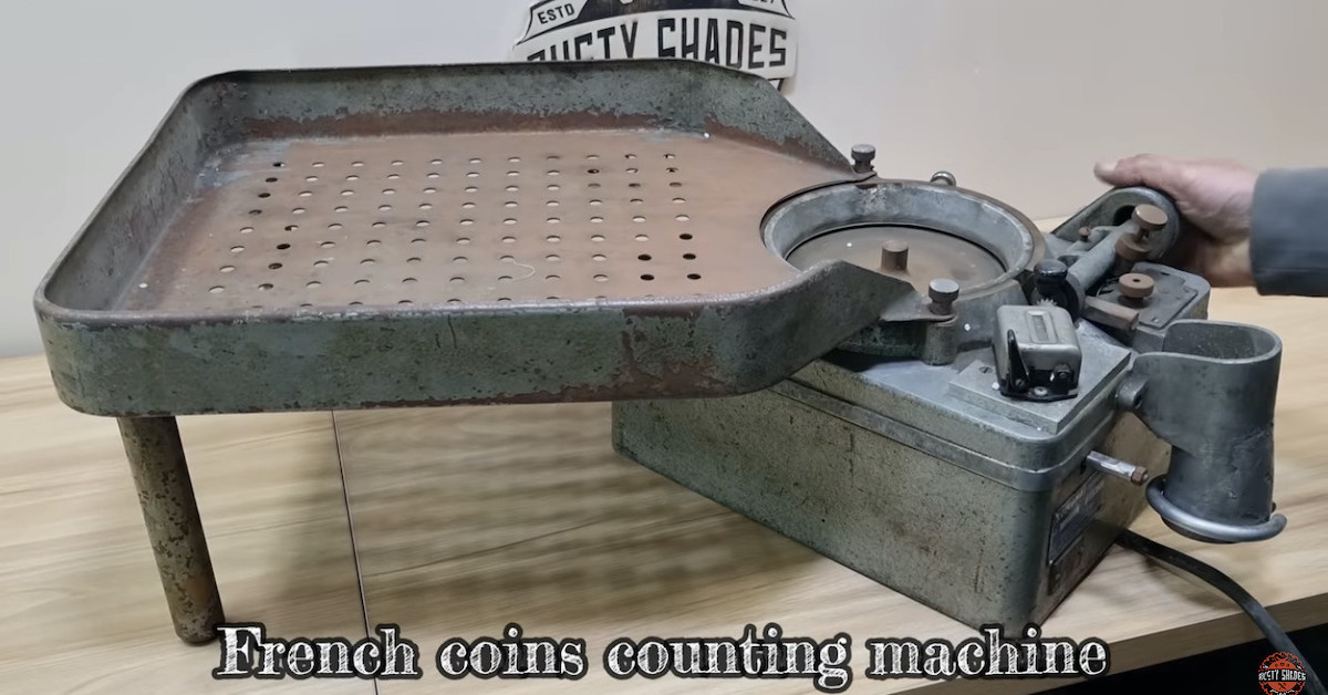 ボロボロのコイン計数器(画像はYouTubeチャンネル「Rusty Shades Restoration」から引用、以下同)