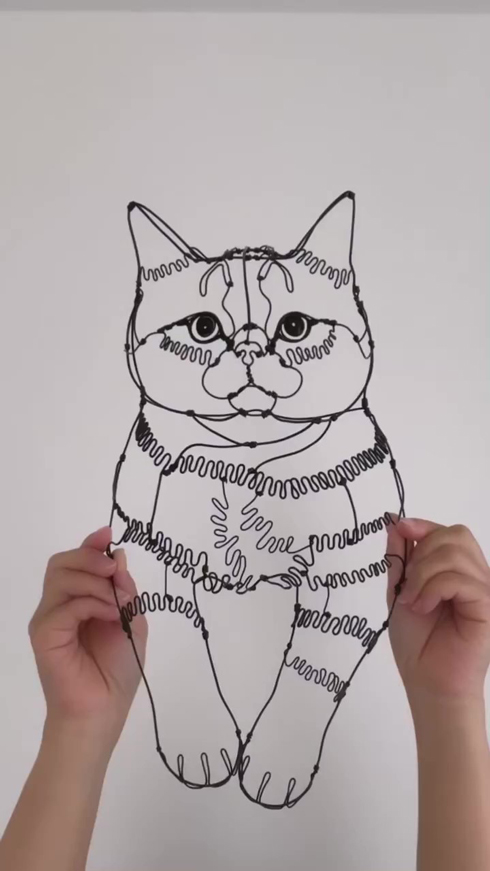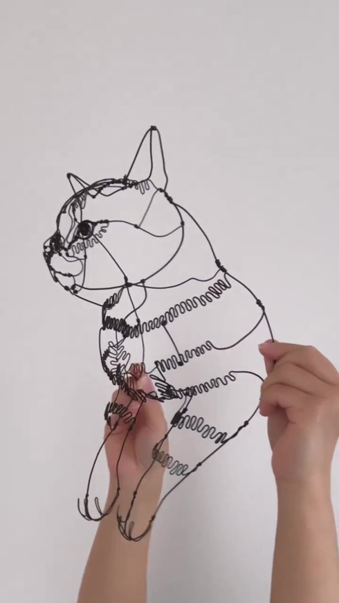 「立体感がすごい」「ウチの猫も作って」 動物をワイヤーで表現したアート作品がかわいくて不思議
