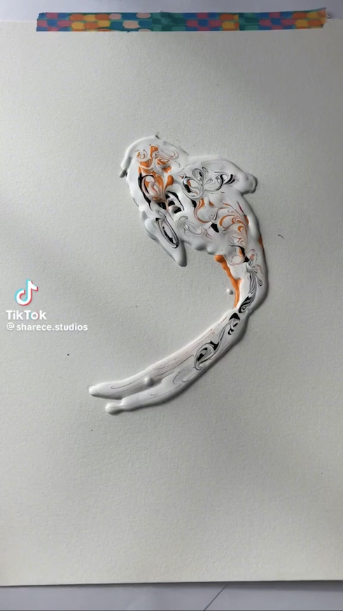 作品を投稿したのはsharece.studios(@sharece.studios)さん。紙の上に垂らした絵の具をへらで伸ばすと、下に描かれていた鯉の絵が姿を現します。鮮やかで動きのある絵の具の跡と鯉が一体となり、手描きでは得られないような躍動感のあふれる作品が生まれました。