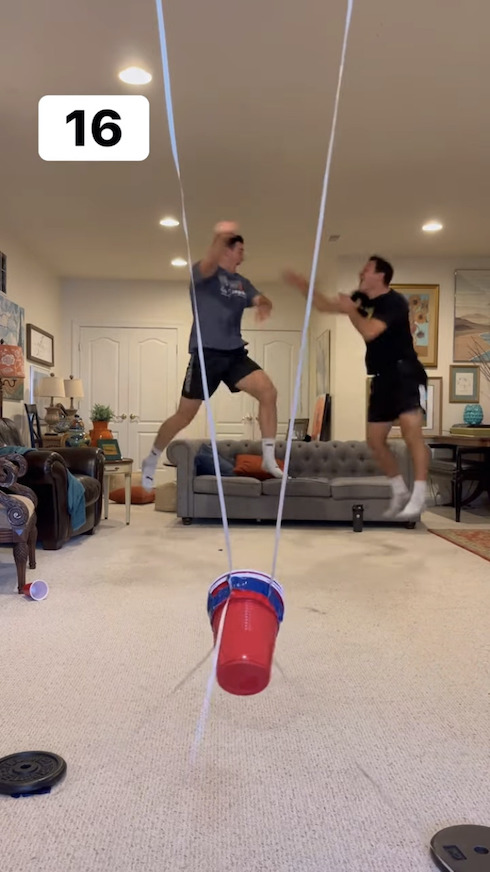 プラスチックカップを用いた挑戦(画像はHulett BrothersさんのYouTubeより引用、以下同)