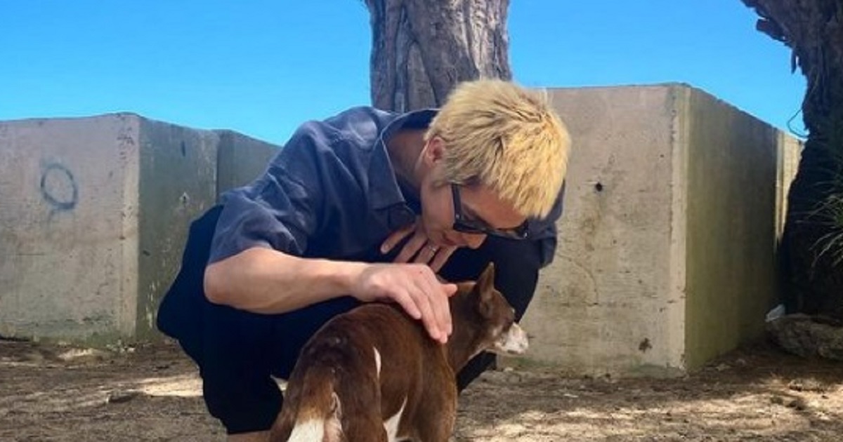 青い空が広がった南国のようなロケーションで犬をなでる1枚を公開した窪田さん。これまで短髪の黒髪でしたが、金に染め、ガラリとイメージチェンジした姿を見せています。