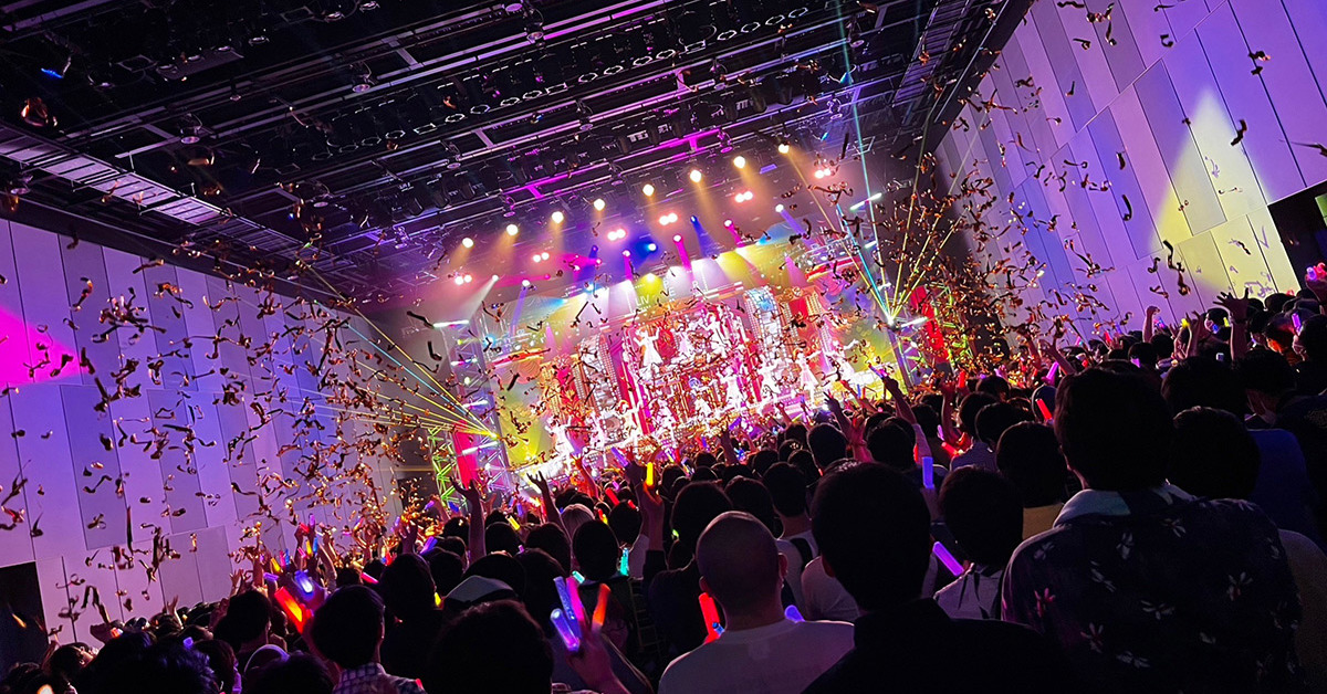曲中ではMRステージ内の演出だけでなく、レーザーやスモーク、金テープといったリアルな演出も盛りだくさん。各公演12曲が、臨場感あふれるMRステージで披露されました。同公演のアーカイブを7月26日より視聴できる配信チケットが現在販売されています。