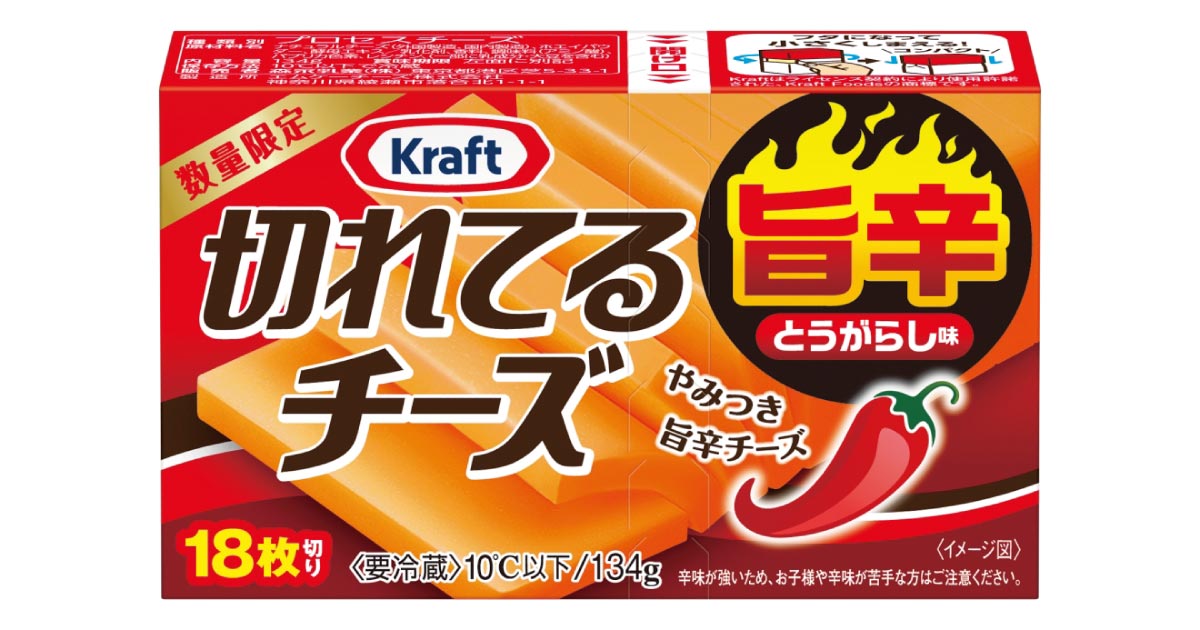 森永乳業「クラフト 切れてるチーズ」シリーズから、数量限定で「旨辛とうがらし味」が登場します。一目で分かる、ビールとの相性の良さ……!