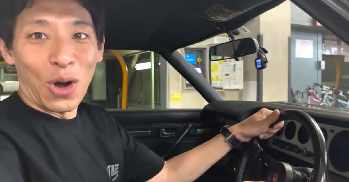 浜本広晃さんの愛車・ケンメリに興奮する根建太一さん(画像はYouTubeから)