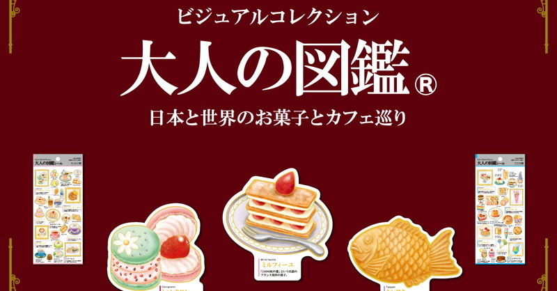 「大人の図鑑」は、「満たして大人の好奇心」をキャッチコピーに2017年より展開されている、解説付きの図鑑風デザインが特徴の文具シリーズ。今回登場する「大人の図鑑シール」「大人の図鑑ダイカットカード」は、日本や世界それぞれの国で親しまれるお菓子やカフェメニューをモチーフにしています。