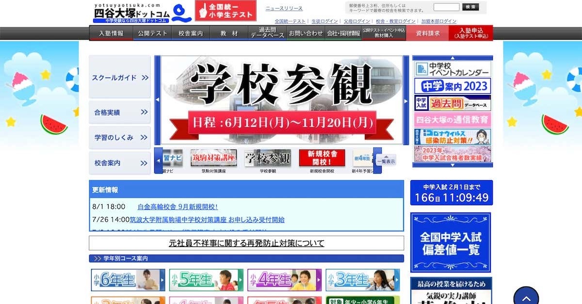 四谷大塚をめぐっては11日、男性講師が女子生徒を盗撮して、小児性愛者が出入りするサイトやSNSに投稿していたと集英社オンラインが報道。四谷大塚は13日、同社が事実を把握した10日付けで当該社員を懲戒解雇処分とし、警察に通報にしたと発表しています(関連記事)。