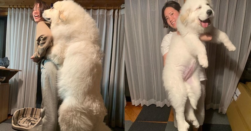 投稿されたのは、グレートピレニーズの「シュシュ」ちゃんが後ろ足で立ち、飼い主さんにギューッと抱きついている写真。身長168センチ飼い主さんと並ぶと同じぐらいの大きさでびっくりしますが、さらに驚きなのは……このときシュシュちゃんが生後9カ月の赤ちゃんだということ。なんとまだ成長期の途中だったのです……!