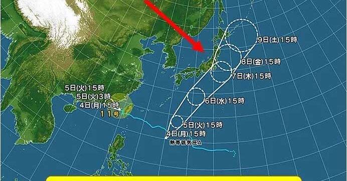6日(水)は台風12号変わりの熱帯低気圧が西日本を通過 秋雨前線とセットで、北陸は久々のまとまった雨か