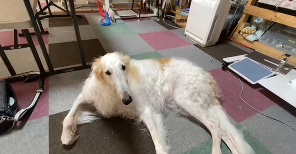 くつろぐボルゾイ、なが〜いお鼻が目立ってる 長さに特化した体に「めっちゃ強そう」と感嘆の声