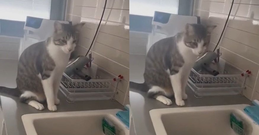 動画はイスラエルの都市ガネイ・ティクヴァにあるお宅で撮影されました。映っている猫ちゃんは1歳の「チコ」くん。チコくんはシンクの隣に座って、投稿者の娘さんが調理しているところを見ています。