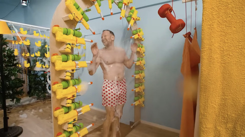 ただ歩くだけでモーニングルーティンが済ませられるという、ものぐさな人にとっては夢のようなマシンですね。これだけ大掛かりな装置を組み立てるくらいなら、自力で身だしなみを整えたほうが楽な気もしますが……。