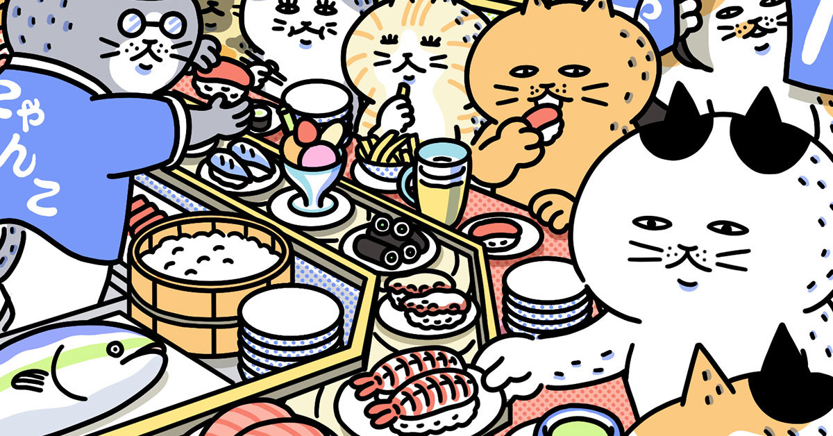 回転ずしを味わう猫さんたち。まぐろにイクラ、タコ、エビ……うーん、選べない! さてさて、このイラストの中に猫の大好物「ネズミ」が隠れています。どこか分かりますか? 隠し絵クイズに挑戦してみてください。