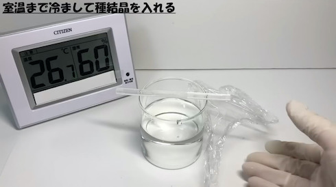 動画を投稿したのは、いろいろな結晶づくりに挑戦している「manzana」(YouTubeX)さん。今回は、薬局などでも売られている「クエン酸一水和物」を使った結晶作りにチャレンジします。