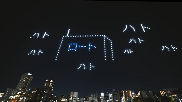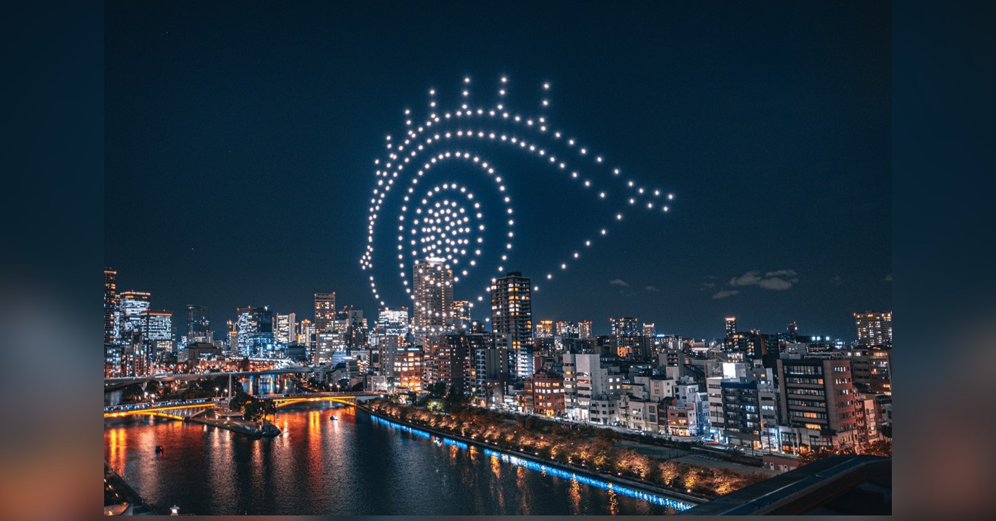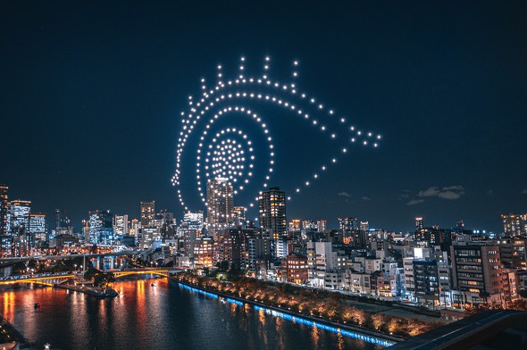 大阪の夜空に現れる、巨大な目玉とハトの群れ……!? ロート製薬が開催したドローンショー「目の愛護ショー」がツッコミどころ満載