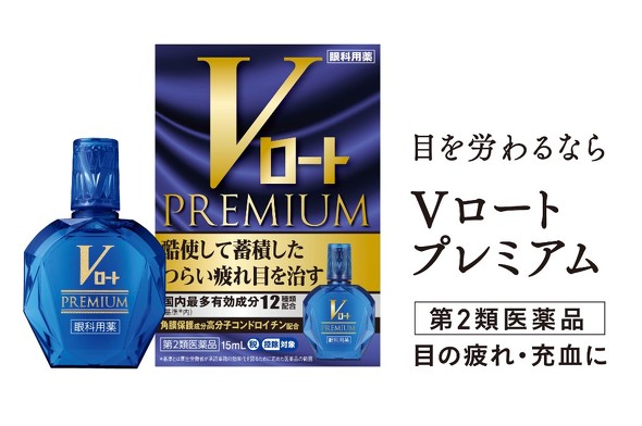 ロート製薬は、日々目を酷使している現代の人々の疲れ目をケアするべく、基準(※2)内最多の12有効成分を配合したロート目薬「Vロートプレミアム」を販売しています。