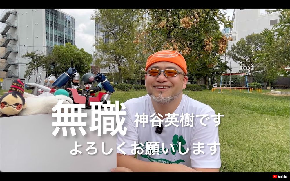 動画は神谷さんが退職後にオフィスから出てくるところからスタート。ビルの目の前にある公園でカメラを回し、「プラチナゲームズ副社長・執行役員、チーフゲームデザイナー……だった“無職”神谷英樹です」と、小粋な挨拶をかまします。