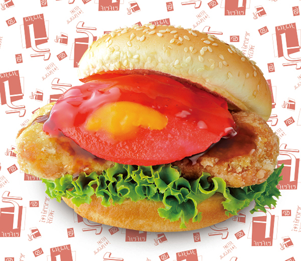 チキン竜田に載せた赤く染まった目玉焼きを「赤き月」に見立て、アニメの世界観をハンバーガーで表現したメニュー。ジューシーなチキンと、とろりとした目玉焼きの相性が良く、紅ショウガソースを加えることで、さっぱりとしたおいしさが楽しめるとのこと。