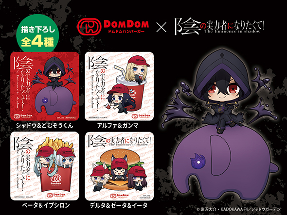 ドムドムハンバーガーはTVアニメ「陰の実力者になりたくて!」とのコラボメニュー「赤き月見チキン竜田バーガー」を、ドムドムハンバーガーPLUS銀座店を除く26店舗で期間限定で販売します。